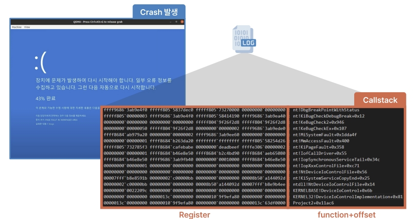 발생 시 Guest OS의 Call Stack을 덤프해올 수 있도록 하였습니다.