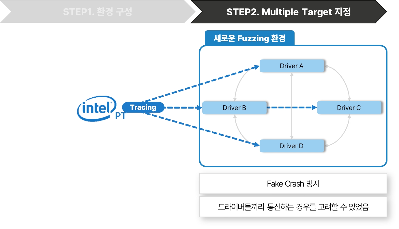 이를 방지하기 위해 GUI Installer를 통해 실제 환경과 동일하게 맞춰준 이후 Intel PT Range를 여러 드라이버로 적용하여 실제 드라이버끼리의 통신도 커버리지에 반영하여 퍼징하였습니다.